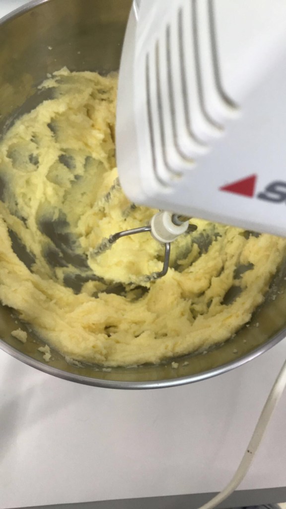 👉🏻Fouetter le beurre et le sucre à l’aide d’un batteur électrique ou d’un robot jusqu’à ce que le mélange blanchisse.