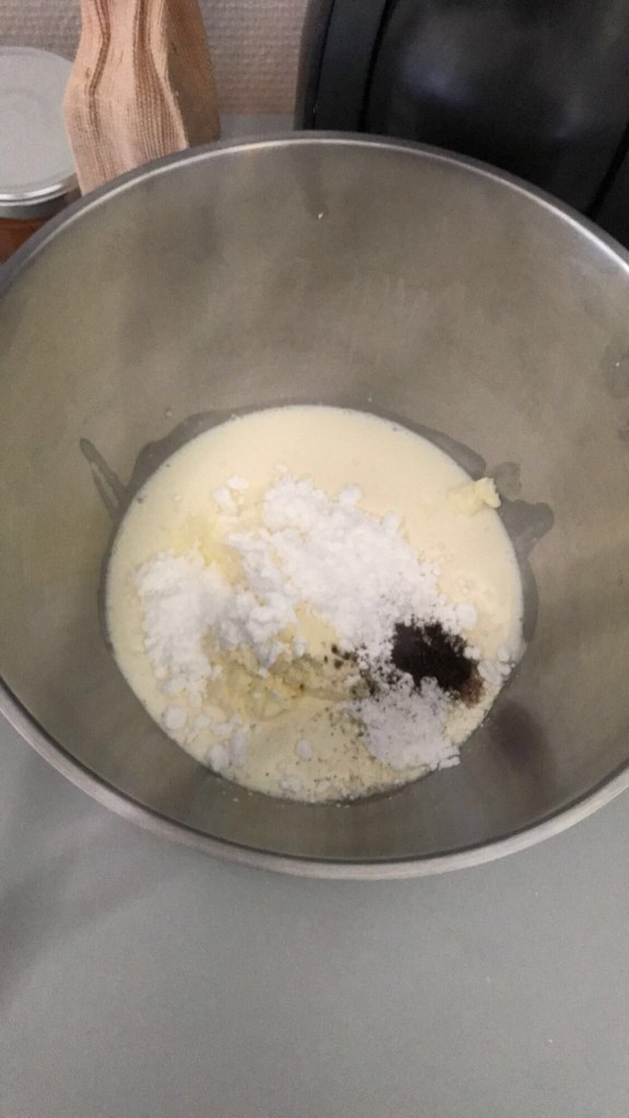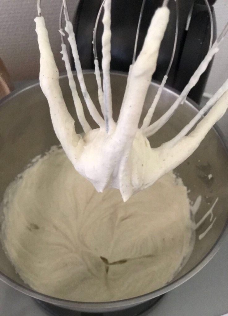 👉🏻Ajouter la vanille ou autre parfum de votre choix .Mélanger afin d’obtenir un appareil homogène.