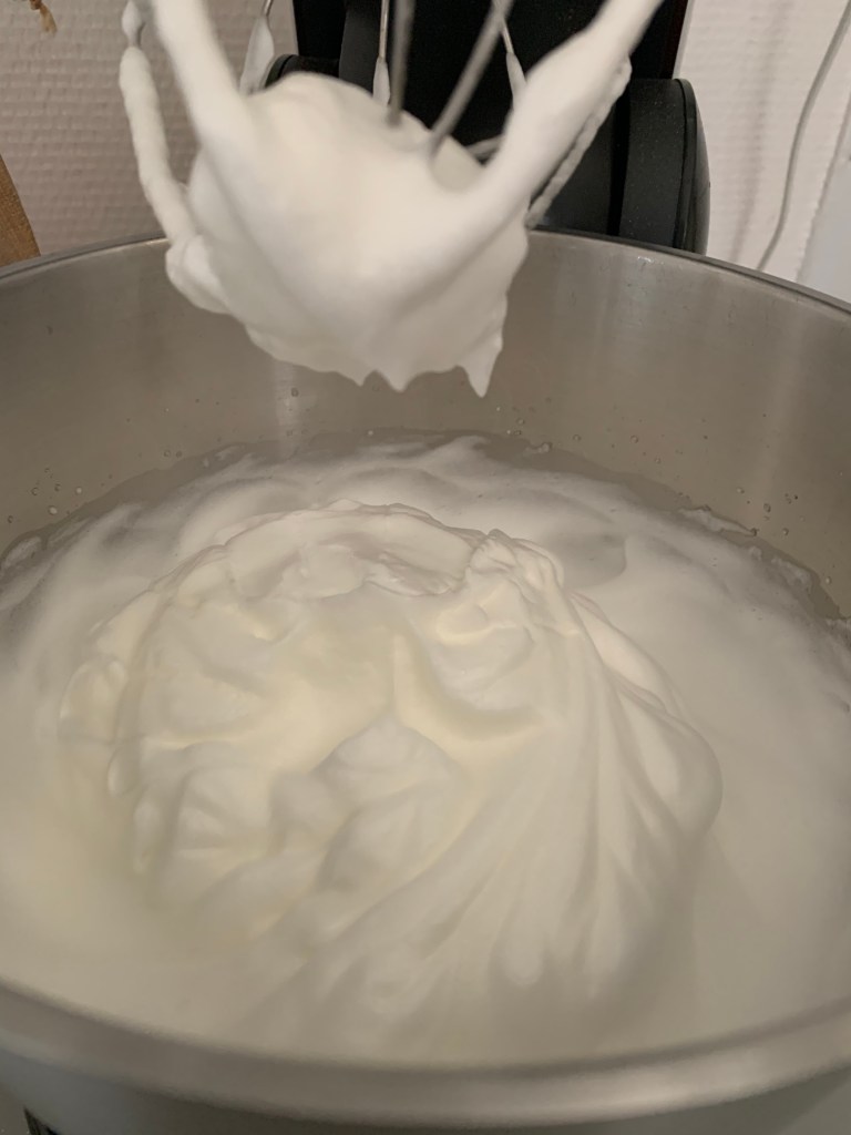 Fouetter jusqu’à obtenir une meringue ferme et le fameux bec d’oiseau .