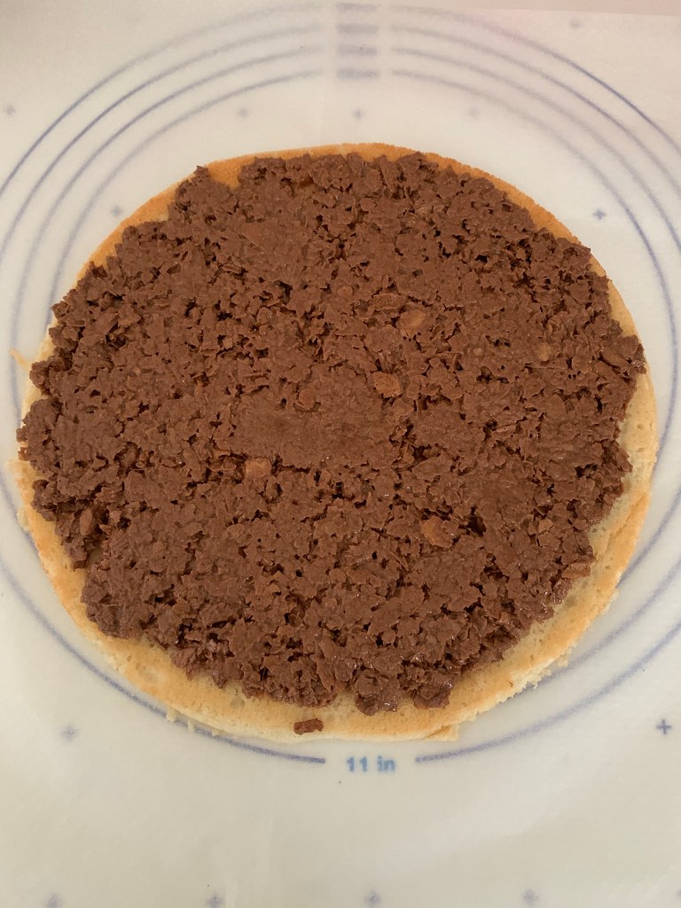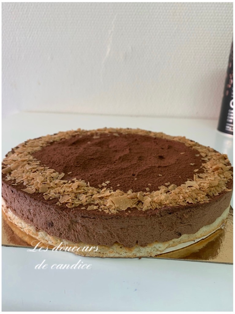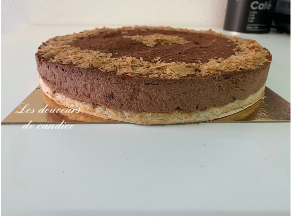 Répartir le croustillant praliné sur la dacquoise et réserver 30 mn au réfrigérateur.