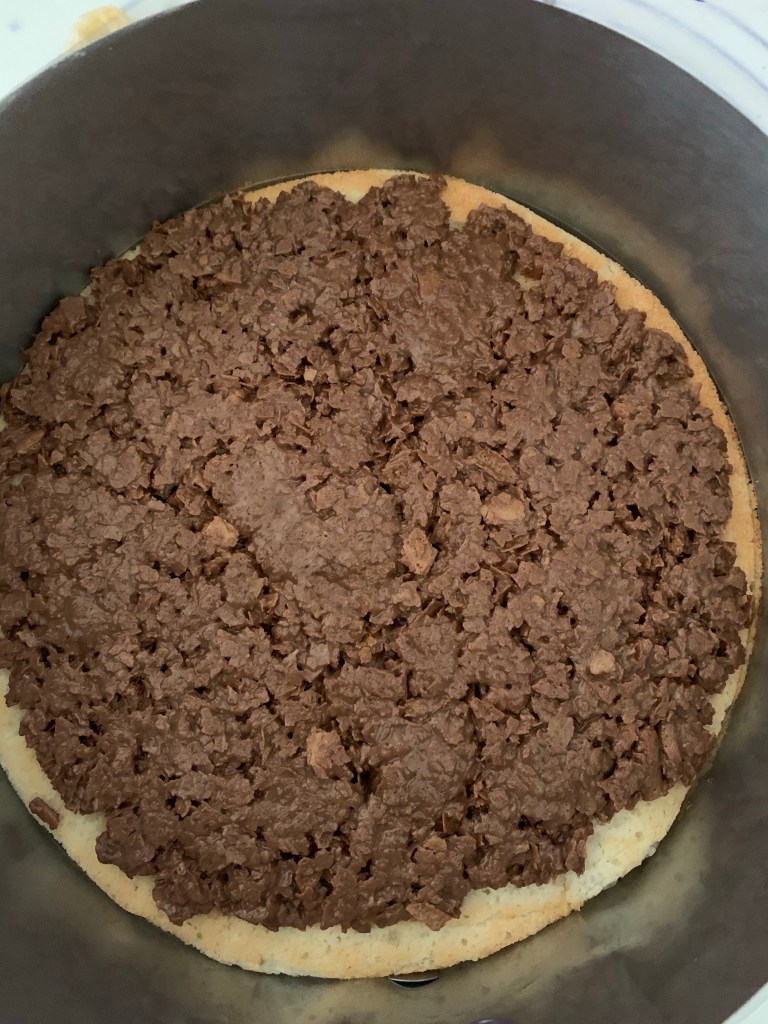 Verser la ganache sur le croustillant praliné, lisser et réserver au réfrigérateur (une nuit idéalement).