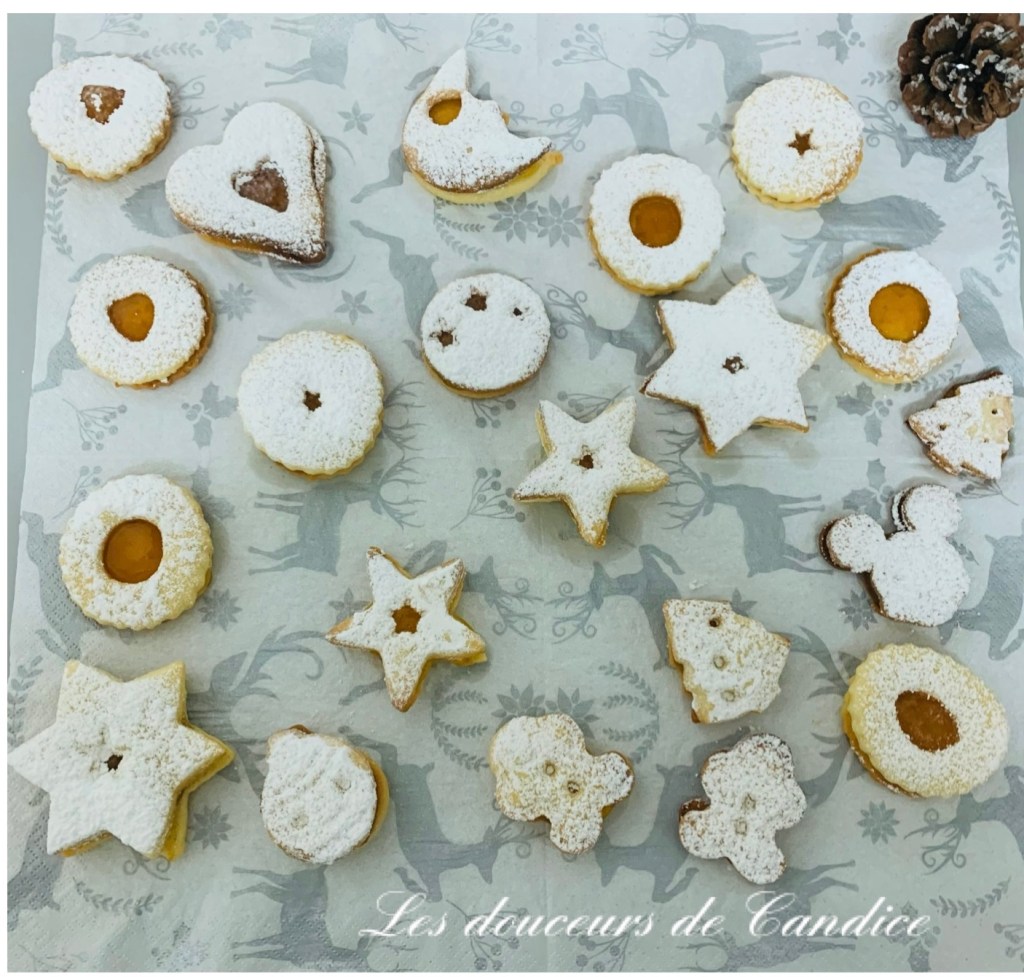 Ingrédient ( pour 30 sablés environ). 250g de farine, 90g de sucre, 1 œuf, 120g de beurre, 1 c à c de levure chimique, 1 pincée de sel, quelques gouttes de jus de citron, sucre glace, confiture de votre choix.