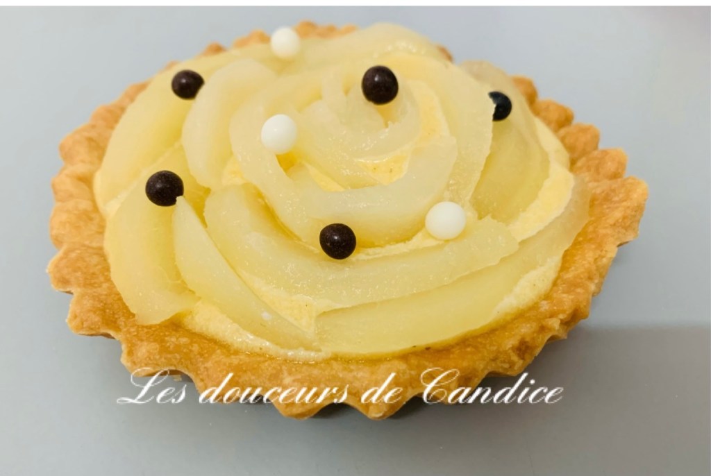 Il se compose d’une pâte sablée , d’une crème de noisettes, de poires et des billes de chocolat.