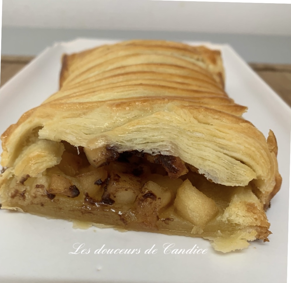 Pour la pâte feuilletée , j’ai opté pour la pâte feuilletée rapide de Christophe Felder et pour la garniture des pommes fondantes se marient parfaitement avec le chocolat.