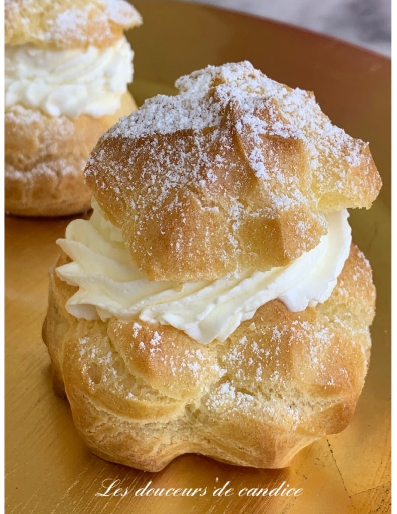 La pâte à choux est aérée et légère . Elle gonfle durant la cuisson , laissant cet aspect creux que l’on remplit ensuite de crème fouettée ou de crème pâtissière.
