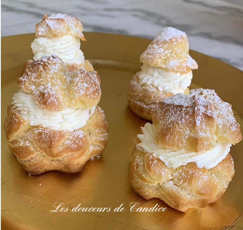 Découper le chapeau des choux au 2/3, garnir généreusement les choux de crème chantilly.