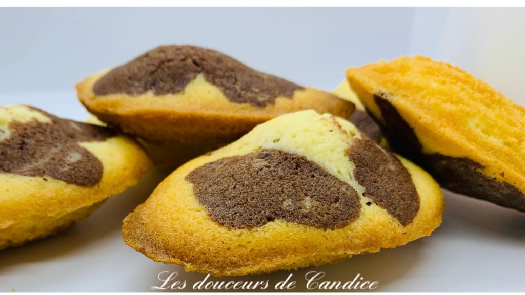 Ingrédients pour environ 18 madeleines : 130g de farine, 100g de sucre , 150g de beurre pommade , 2 oeufs, 1/2 c à c de vanille en poudre, 5g de cacao non sucré, 5g de levure chimique.