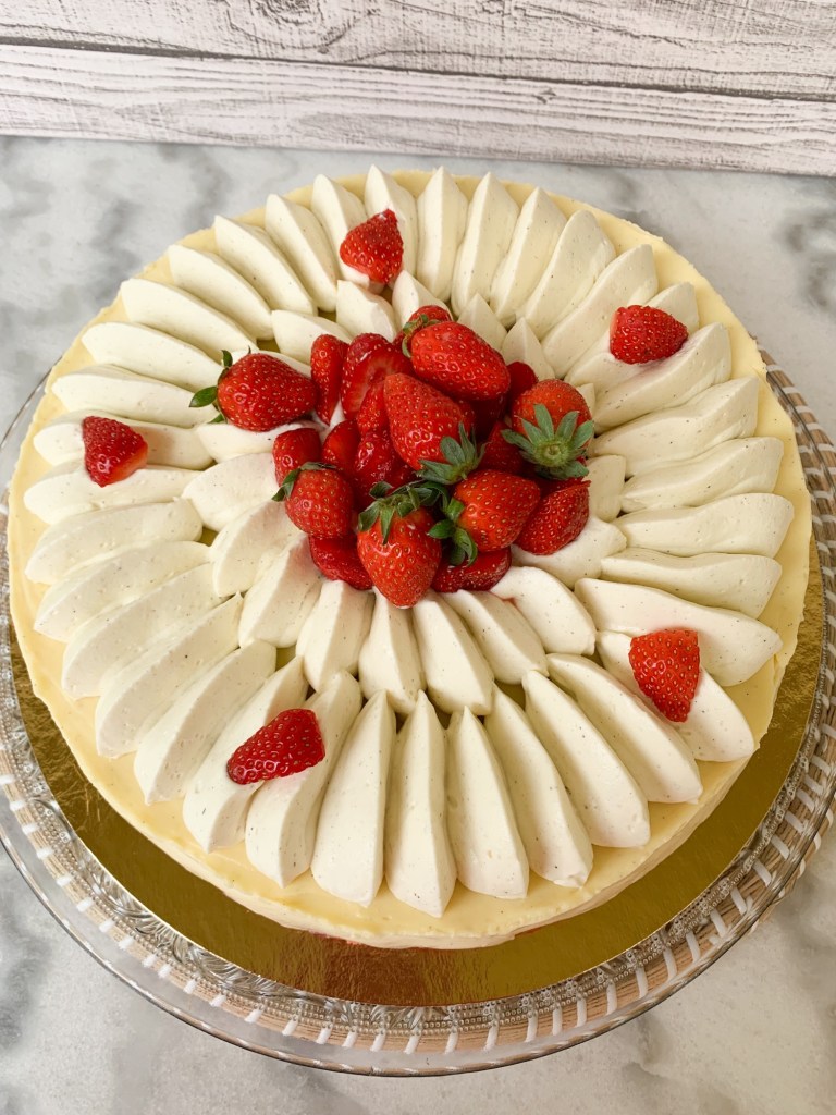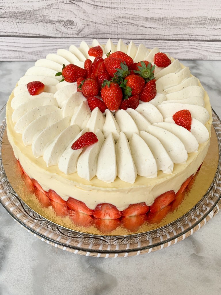 Le fraisier est un grand classique de la pâtisserie, il se compose d’une génoise , de crème et de fraises gariguettes pour ma part .