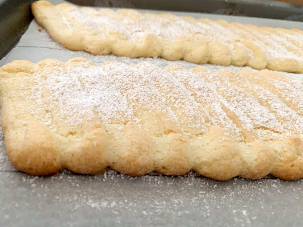 Ah les biscuits cuillères de notre enfance ! Un biscuits très moelleux saupoudré de sucre glace .