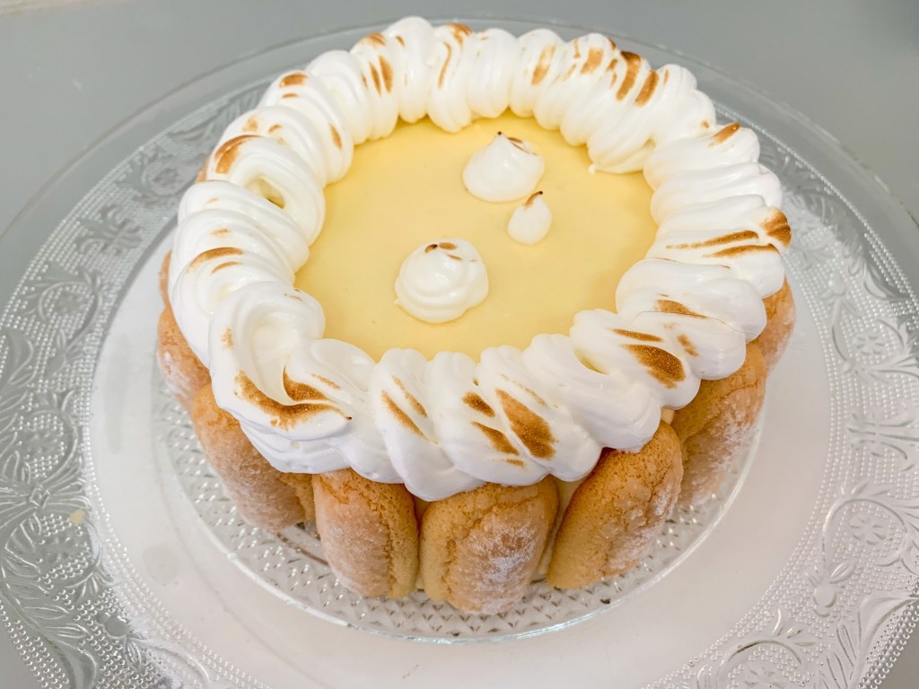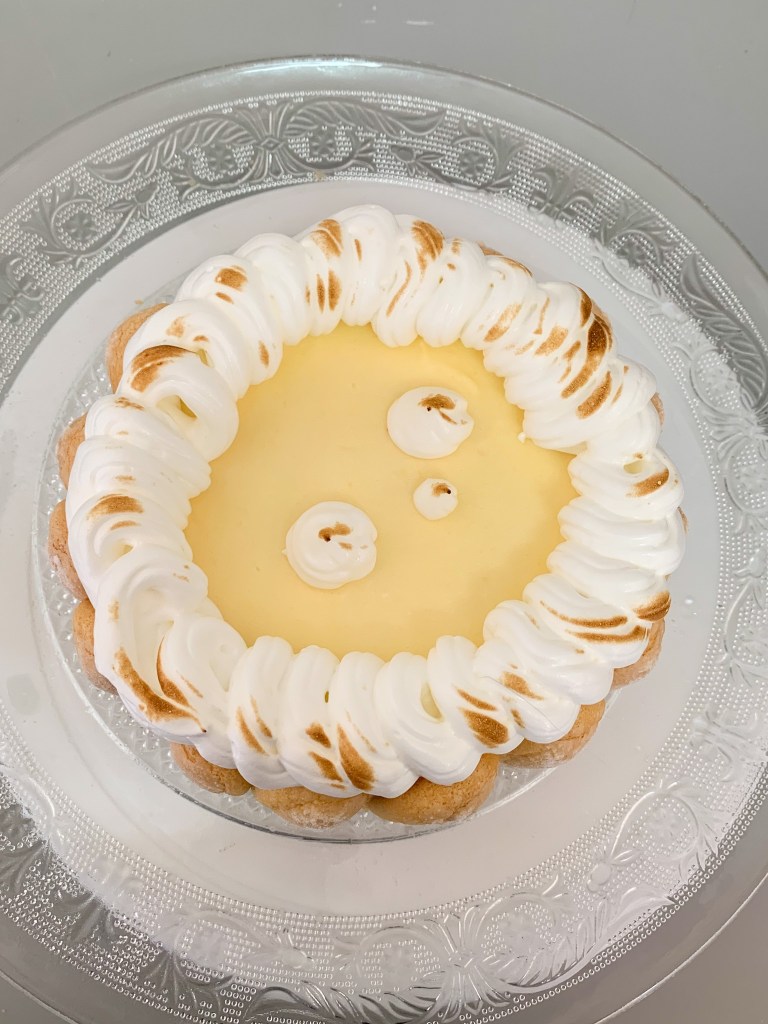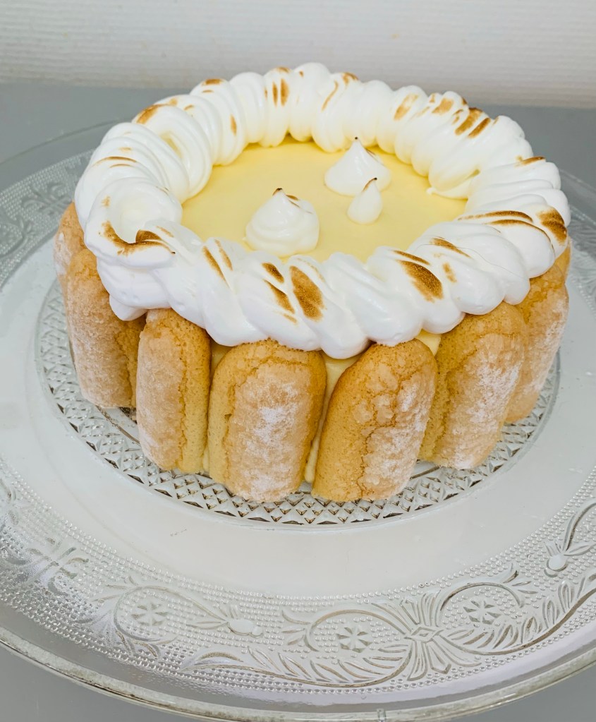 Ingrédients pour un cercle de 18cm: Environ 30 biscuits à la cuillère. Sirop citron : 1 citron, 50g de sucre en poudre. Mousse au citron : 3 à 4 citrons selon la grosseur , 4 œufs, 3 feuilles de gélatine (soit 6g), 100g de sucre en poudre, 200ml de crème liquide entière très froide . Meringue italienne : 50g de blancs d’œufs, 125g de sucre, 37g d’eau.