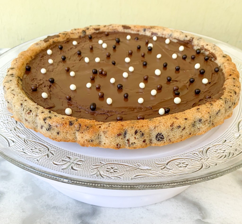 Faites fondre le chocolat au bain marie ou au micro ondes par séquences de 30 secondes puis garnir votre cookie de chocolat fondu .