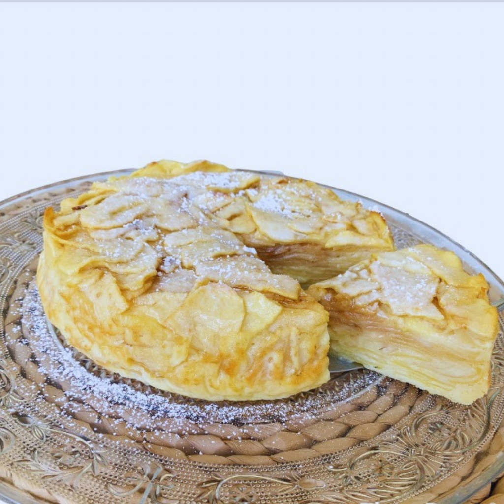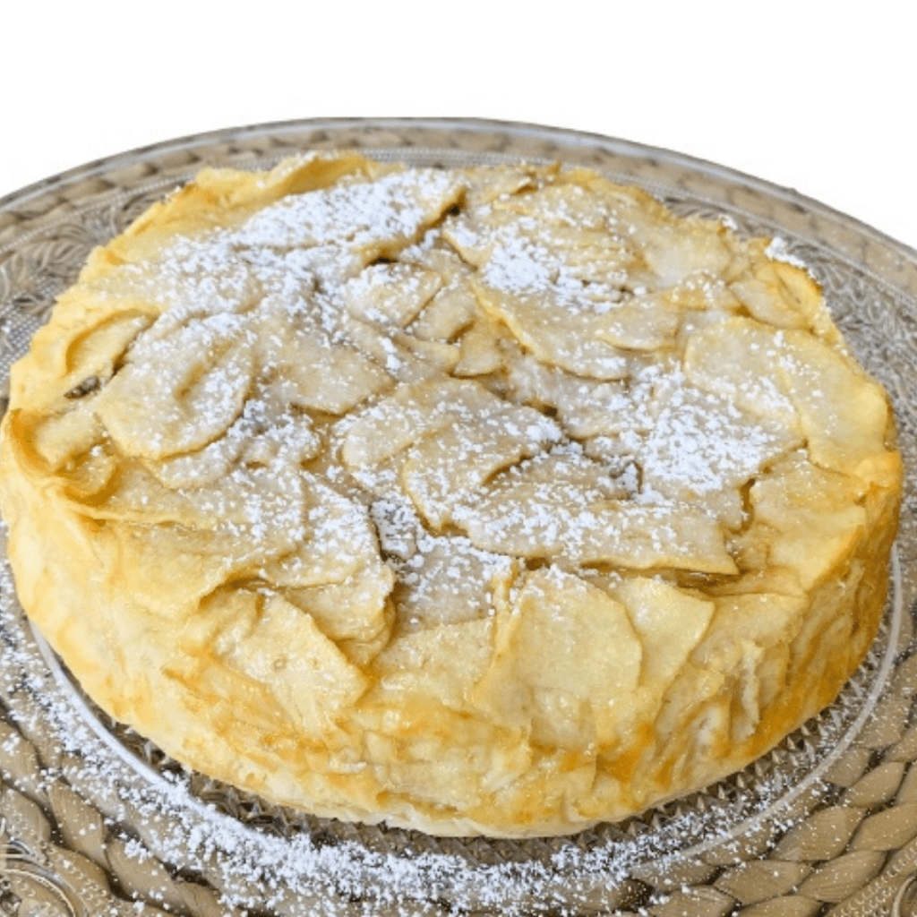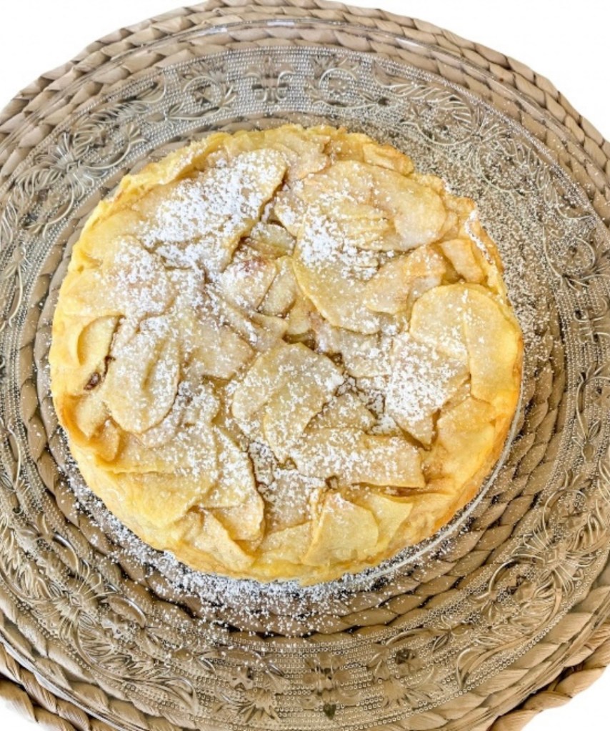 75g de farine, 50g de sucre, 2 oeufs , 100g de lait, 20g de beurre , jus et zeste d’un citron, 6 pommes , 1/2 sachet de levure chimique, sucre glace pour le décor .