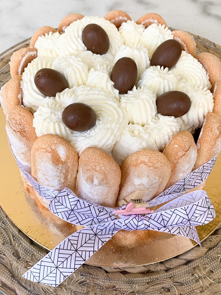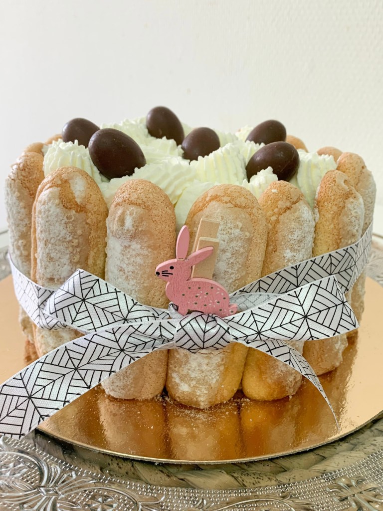 Cette année pour fêtes de Pâques j’ai réalisé cette Charlotte au chocolat qui est très facile à préparer. Je souhaitais une recette facile et rapide car en terminant le travail le samedi et reprendre le lundi de Pâques c’était chaud patate .