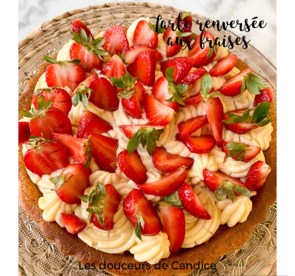J’ai profité de la saison des fraises pour utiliser le moule à tarte renversée que j’adore .