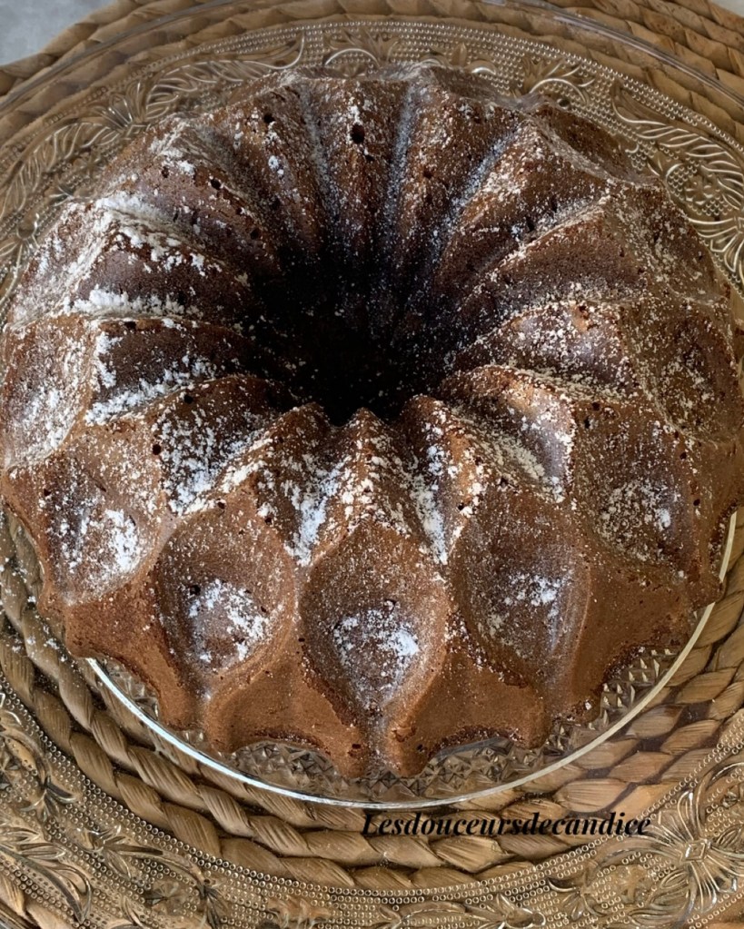 Ingrédients pour 8 à 10 personnes : 6 oeufs , 1 verre de sucre ( mesure d’un verre de 250ml) , 1 verre d’huile , 1 verre de lait , 2 verres et 1/2 de farine , 1 sachet de levure chimique, 3 c à s de cacao , sucre glace pour décorer (facultatif)