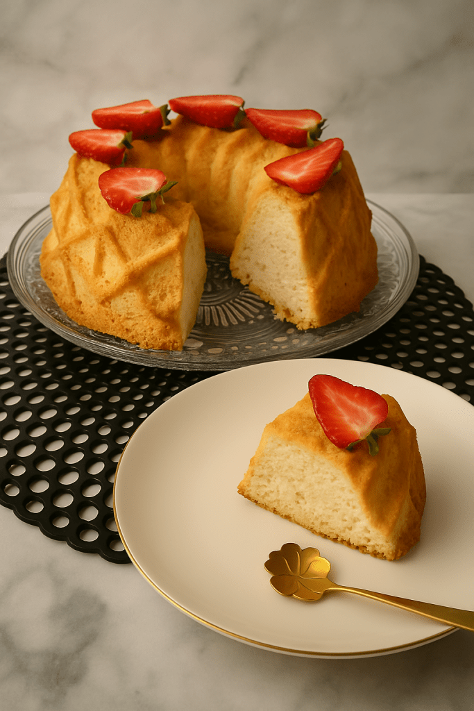 Aujourd’hui je vous propose une douceur céleste , le Gâteau des Anges . Léger comme une plume , moelleux à souhait , il est préparé uniquement avec des blancs d’œufs , ce qui lui donne cette texture aérienne si particulière .