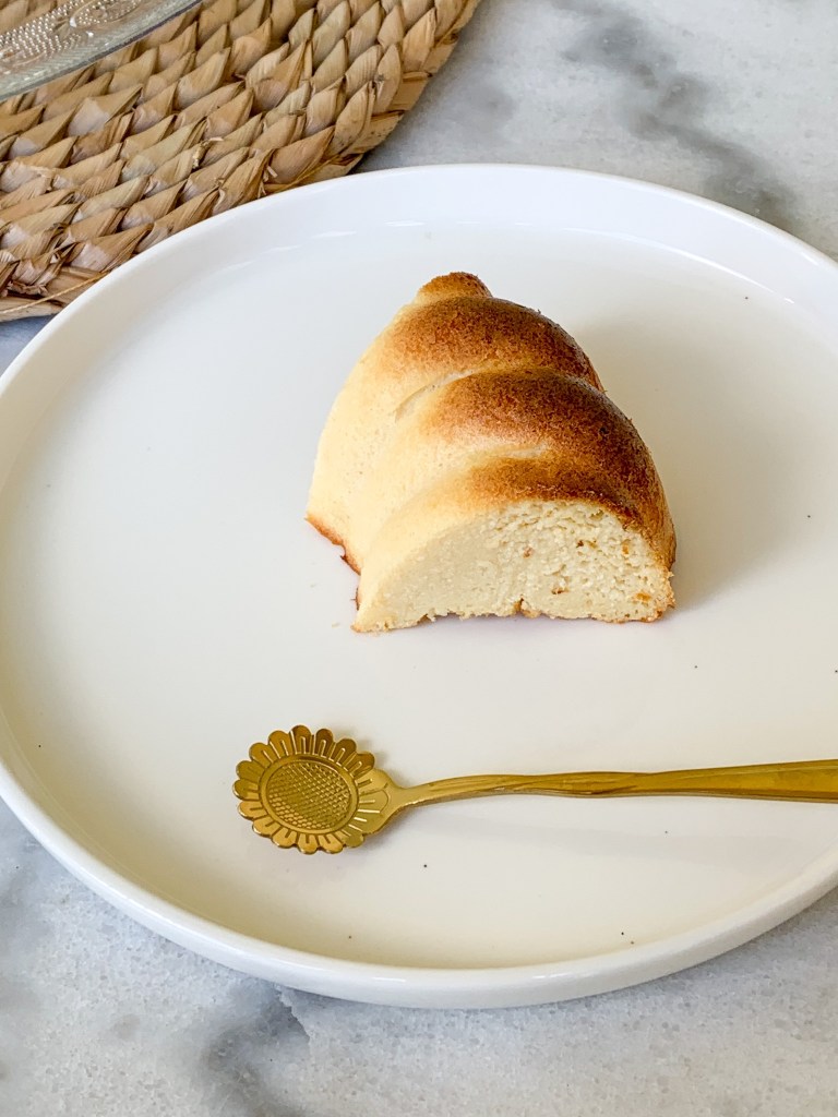 Biscuit moelleux : 2 oeufs, 75g de sucre, 1 pincée de sel, 1/2 verre de lait, 75g de beurre fondu, 150g de farine, 1 sachet de levure chimique, le zeste d’un citron.