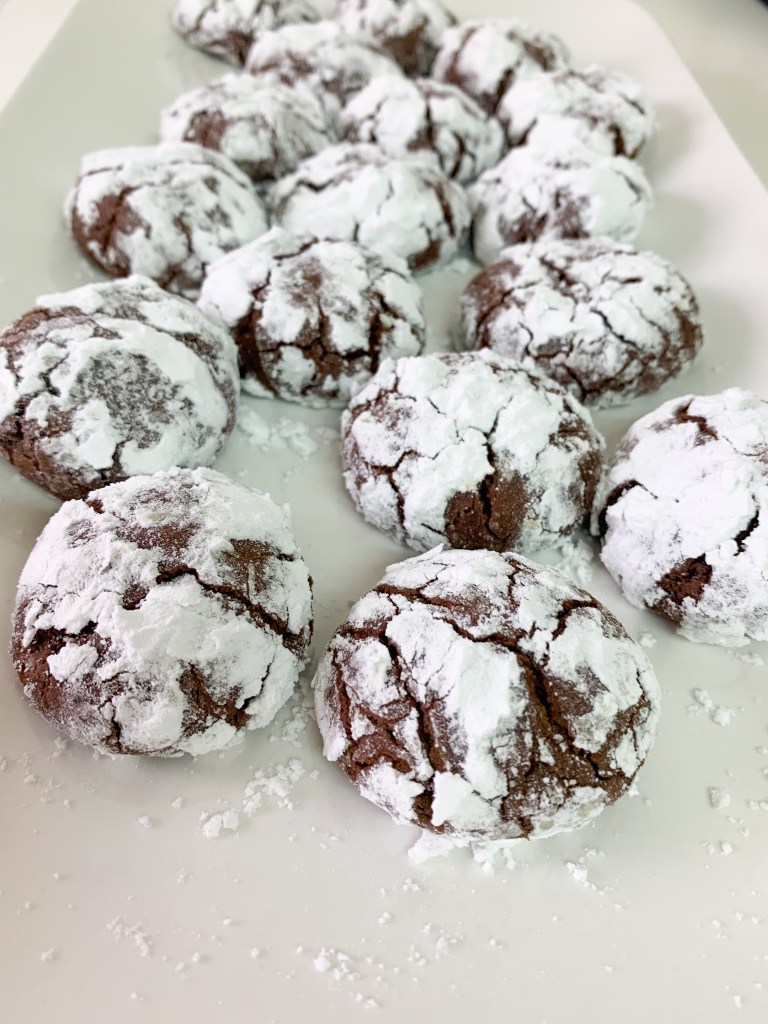 Ce sont des petits gâteaux moelleux à l’intérieur craquelés sur le dessus et enrobés de sucre glace .