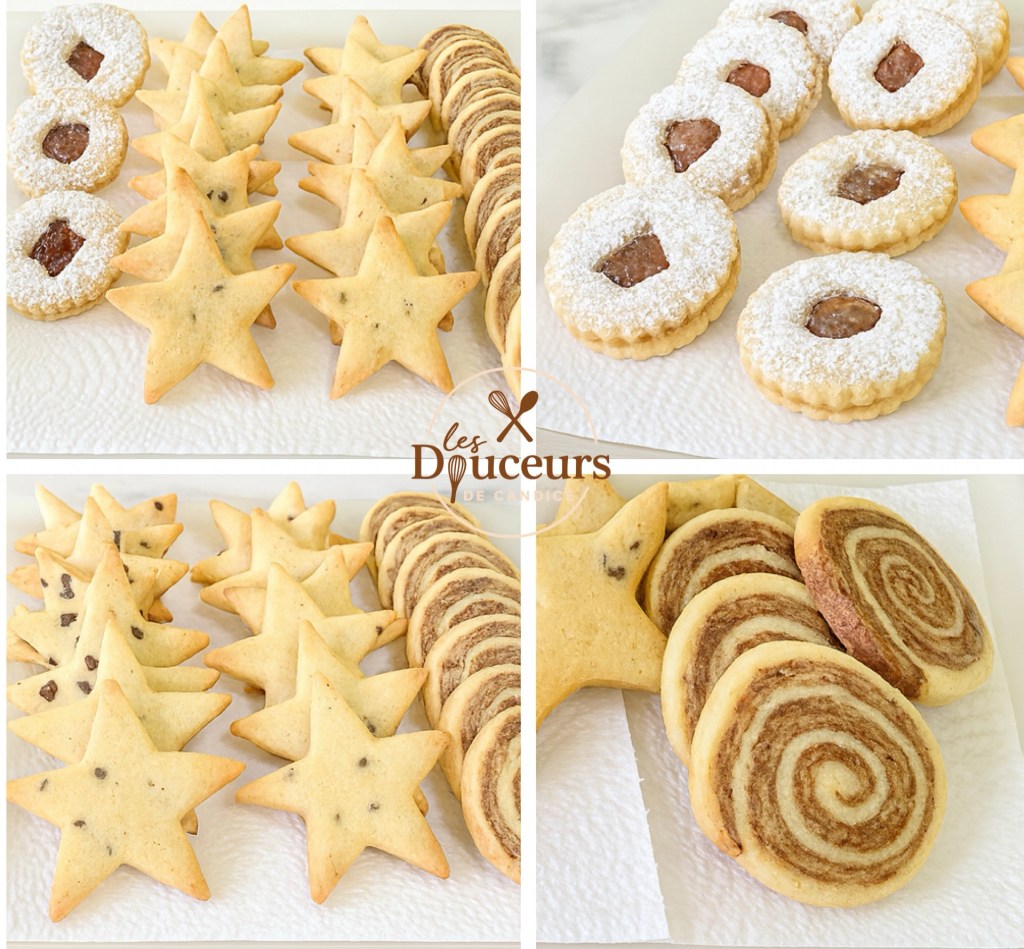 Pour les fêtes j’aime jouer avec les formes , les textures et les saveurs …mais sans multiplier les préparations . Un assortiment de sablés de Noël avec une seule pâte , déclinée en plusieurs versions gourmandes et visuellement festives .