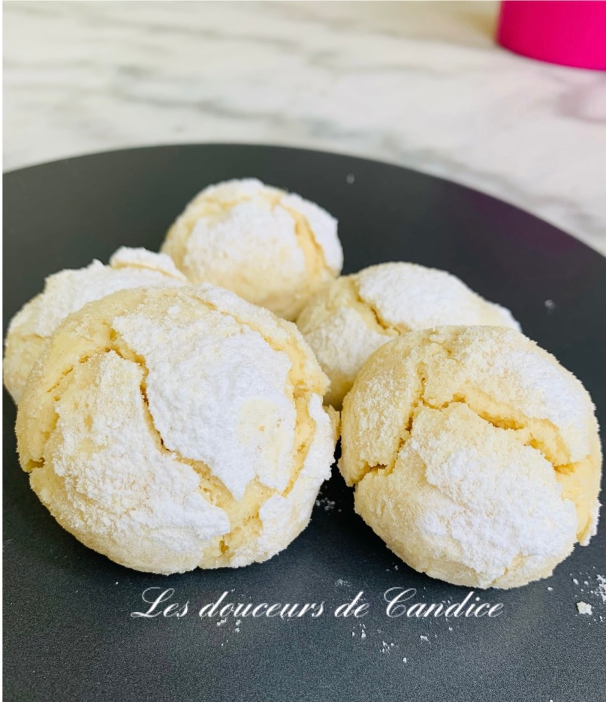 Les CRINKLES sont des petits biscuits craquelés sur le dessus et recouverts de sucre glace .