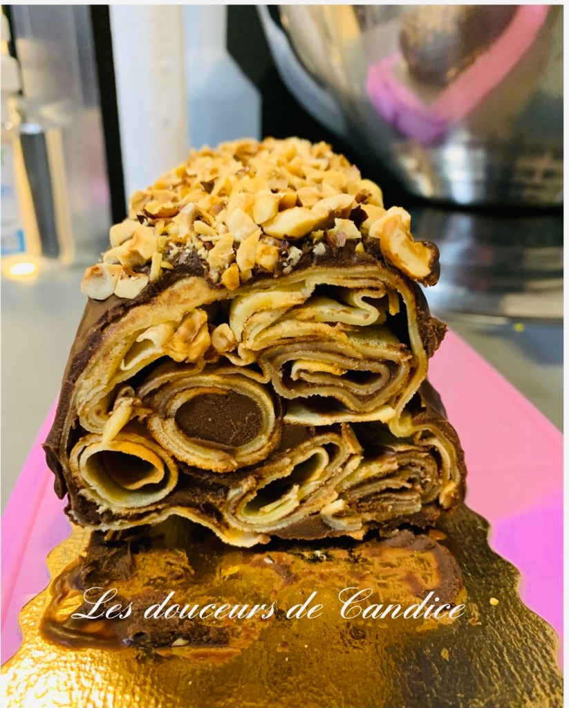 Glaçage chocolat : 100g de chocolat ,, 50g de beurre. 1 c à s de pâte à tartiner maison aux noisettes .