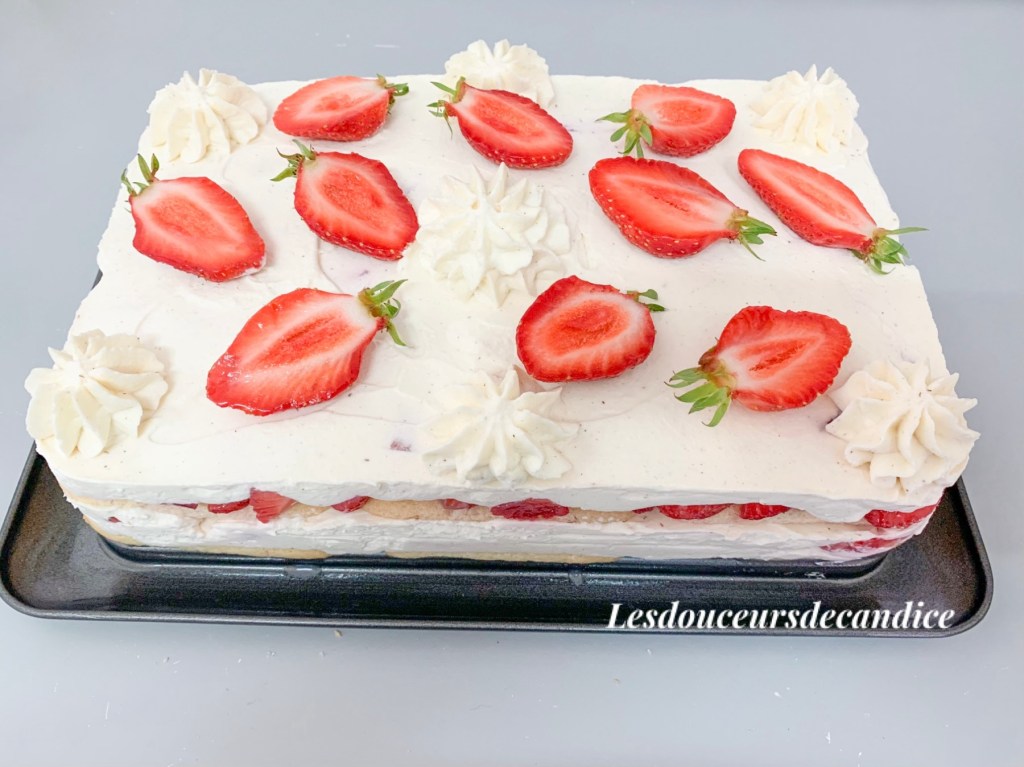 À l’occasion d’un anniversaire, j’ai réalisé cet entremet vanille fraise et il a été validé par mon entourage .